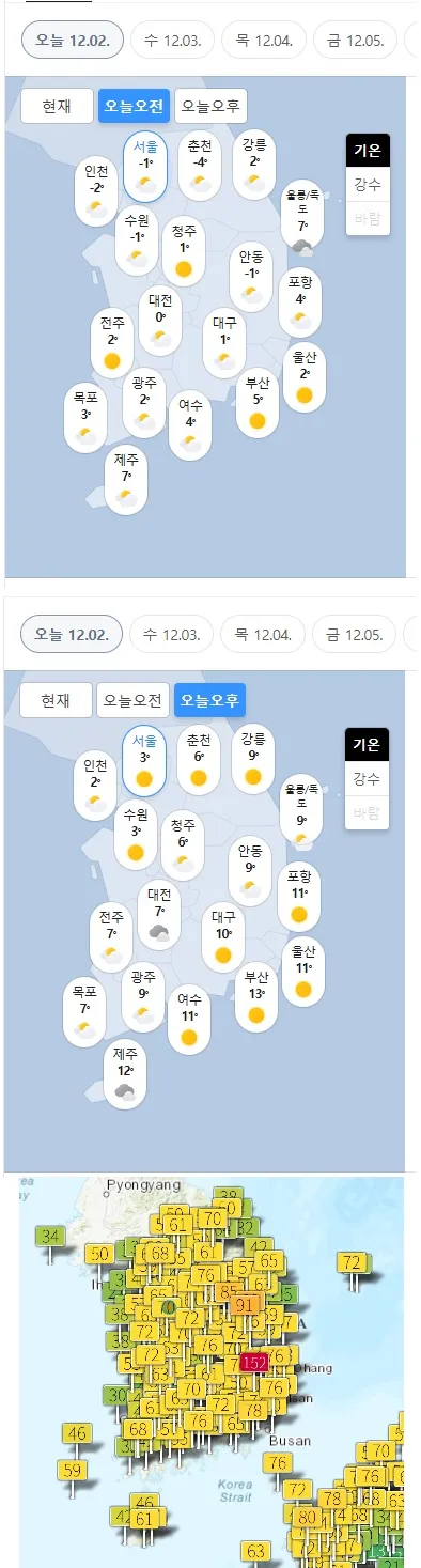 오늘의 날씨 25년 12월 02일, 기온, 미세먼지