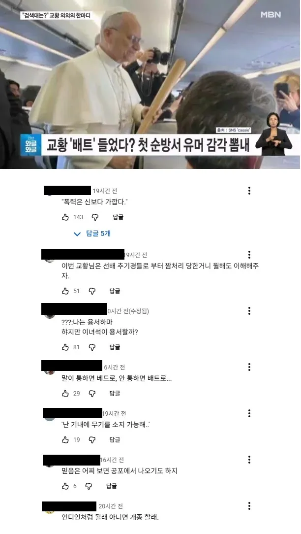 선물받은 배트든 교황 짤에 달린 드립들 ㅋㅋㅋㅋ