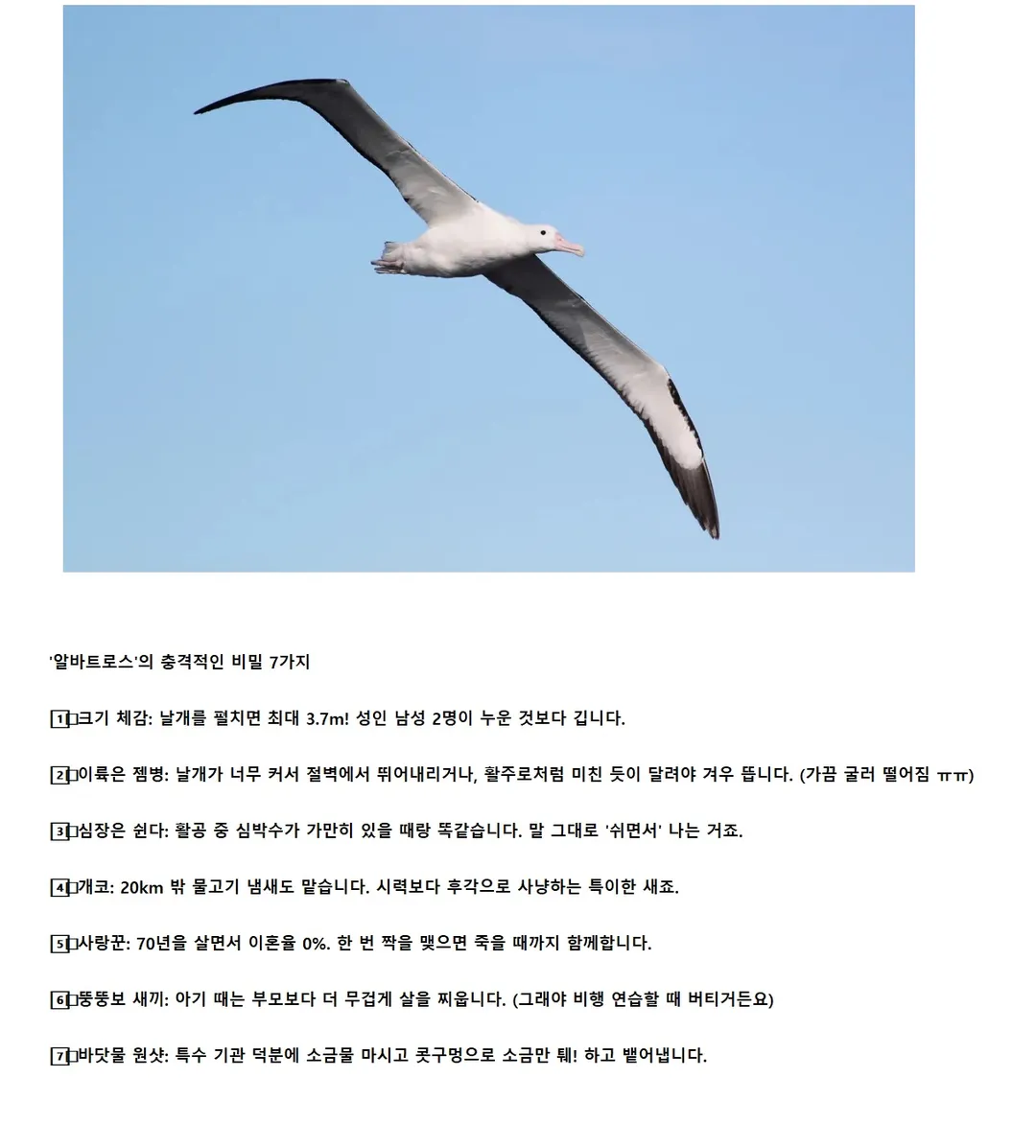 유머 세상에서 제일 큰 나는 새 '알바트로스'의 비밀 🖼️
