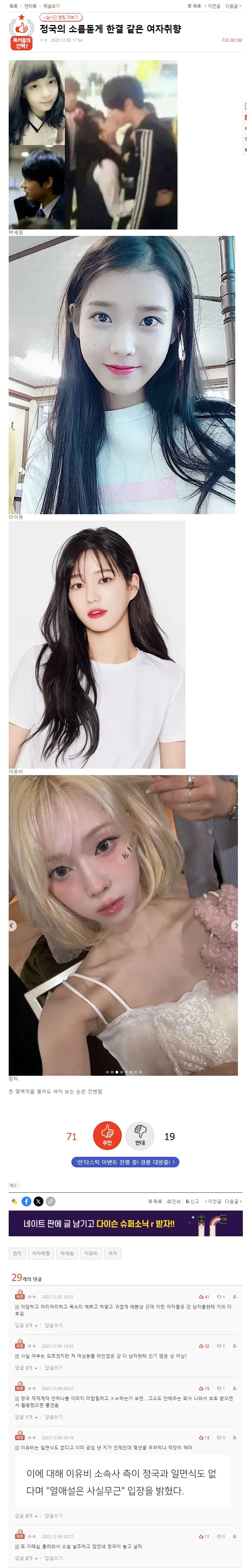 유머 판에서 분석하는 정국의 일관된 여자취향 🖼️