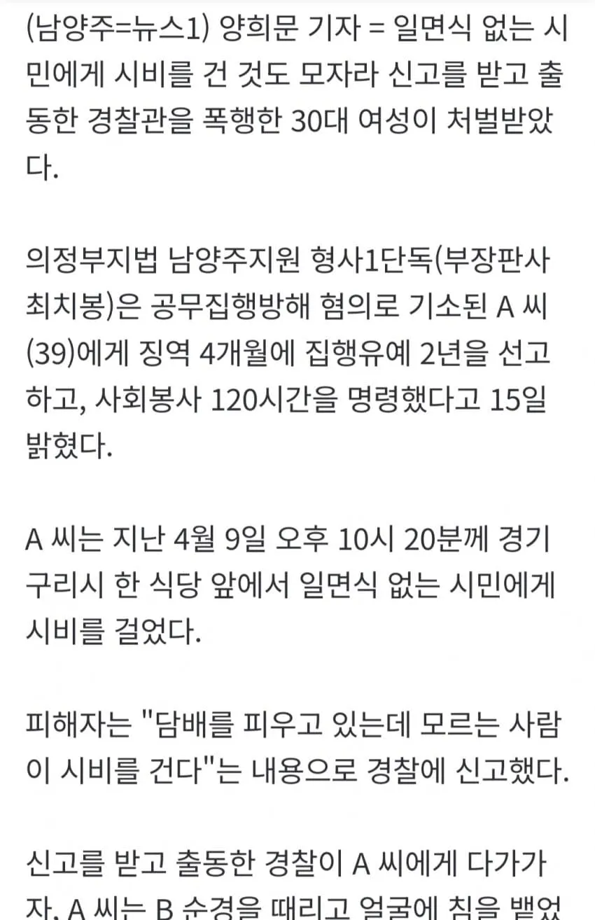유머 시민, 경찰 무대뽀 폭행한 30대 여성이 받은 판결 🖼️