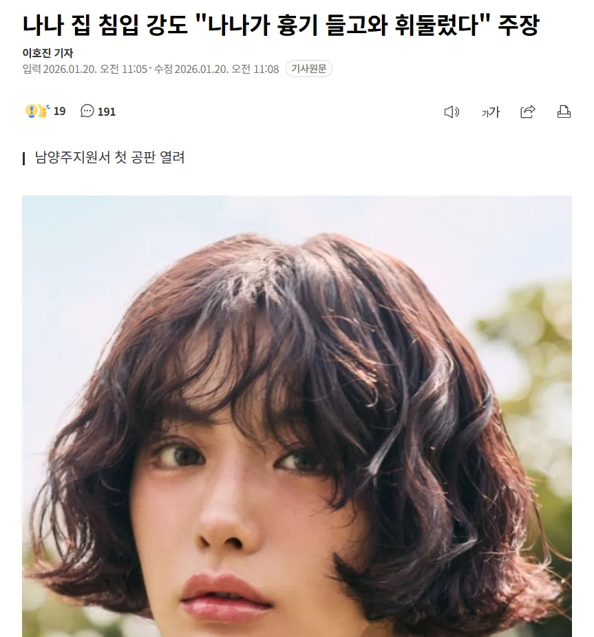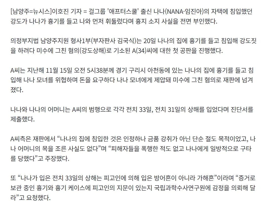 뉴스 나나 집 침입 강도 "나나가 흉기 들고와 휘둘렀다" 주장 🖼️