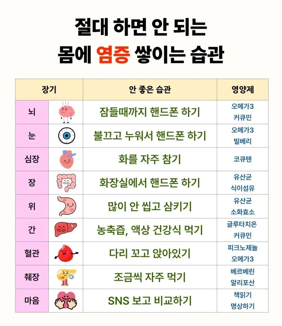 유머 절대 하면 안되는 몸에 염증 쌓이는 습관 🖼️