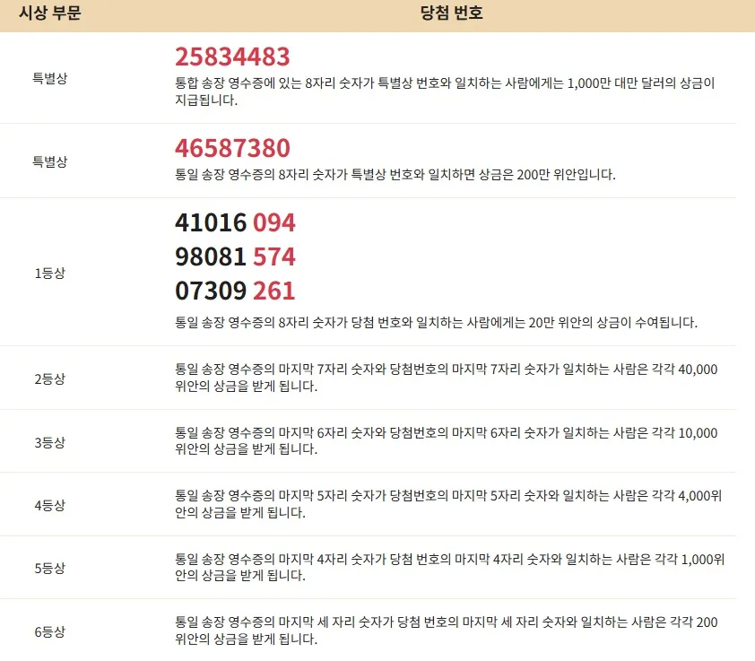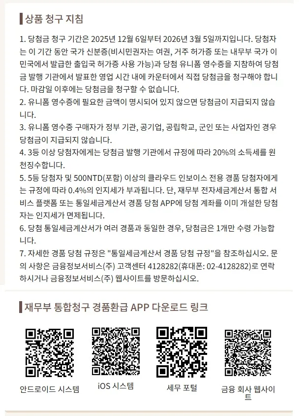 대만 영수증 복권, 2025년 9-10월 당첨번호
